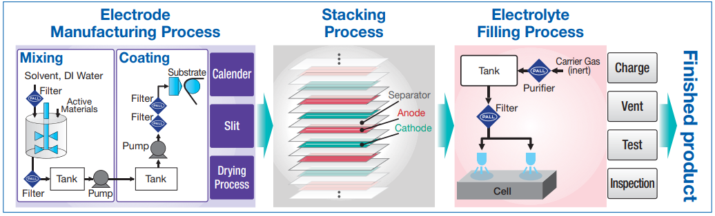 電池組裝過(guò)程(上圖來(lái)源于PALL公司)