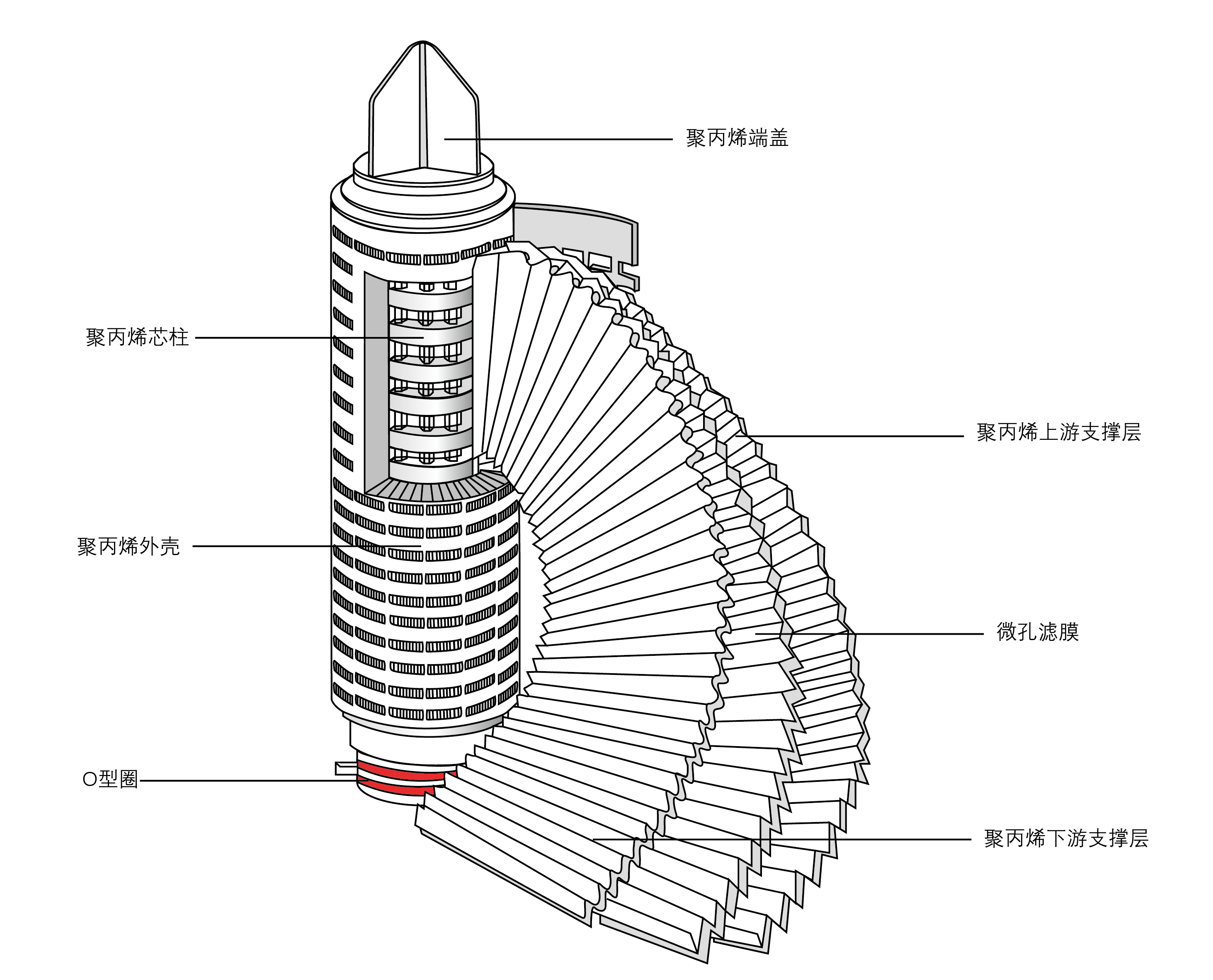 濾膜需要打褶使單位體積能容納更大的膜面積 ·典型面積 /254mm 濾芯(10“):0.5 - 2.0m2 ·同種膜面積越大,流量越高,壓差越低,壽命越長 過濾器常用濾膜介紹: