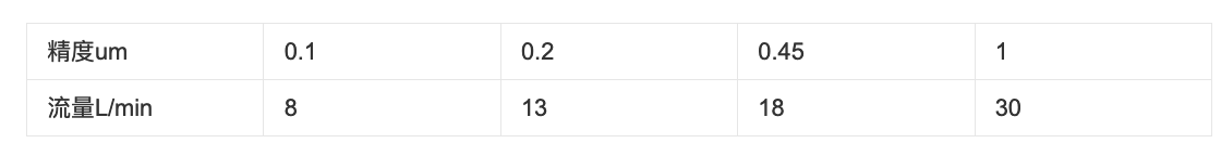過濾精度:0.1、0.2、0.45、1(um)